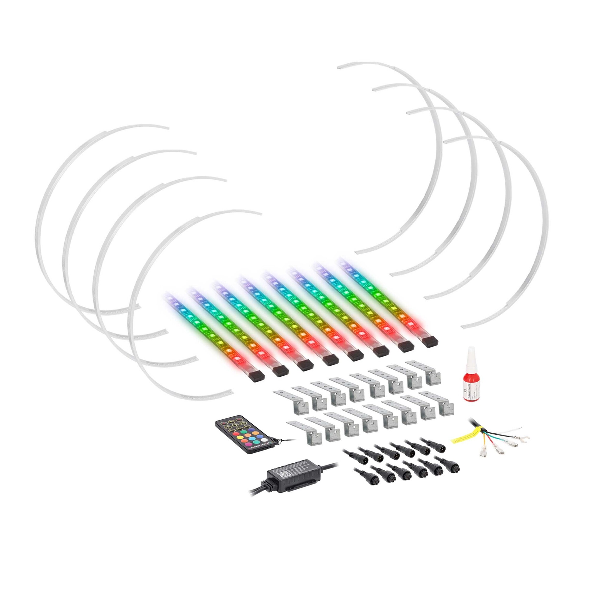 Heise LED Chasing expandable wheel rings have a revolutionary patent-pending design that makes it easy to add brilliant Chasing LED lighting to the wheels of any vehicle. This kit includes four aluminum expandable wheel rings, cuttable LED strips, mounting brackets and hardware, two backbone harnesses for the left and right sides of the vehicle, a Heise Connect Chasing Controller, an RF remote, and thread lock. The wheel rings expand from 15” to 18” to fit a wide range of vehicles.